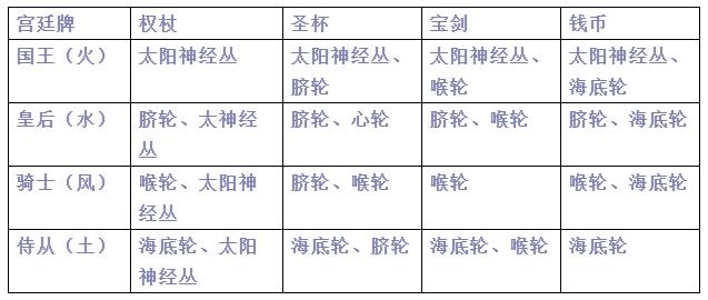 而宮廷牌按照元素分: