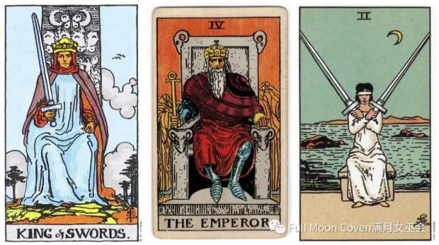 我的爸爸(寶劍國王)是一個嚴厲的父親,他在面前從來都是板著臉的,我做錯了什么他就會罰我,導致我留下了童年陰影,我變得畏懼男性,遇到男的我就警惕性很強(寶劍2),甚至我會說出狠話讓他們遠離我。因此可以看出海底輪和太陽神經叢里留有著童年時未愈合的傷口以及和父親的矛盾,而皇帝牌也代表父親原型。